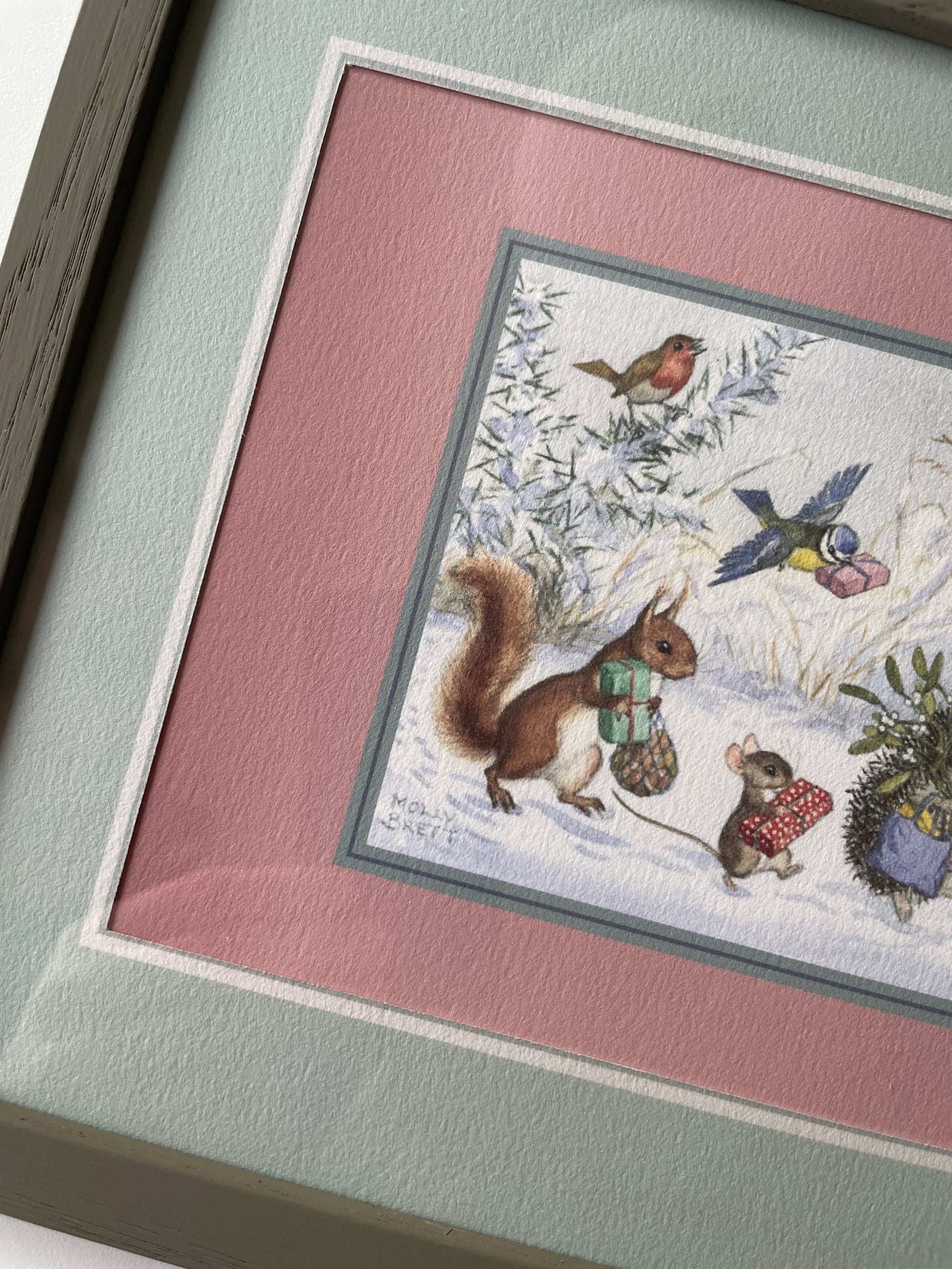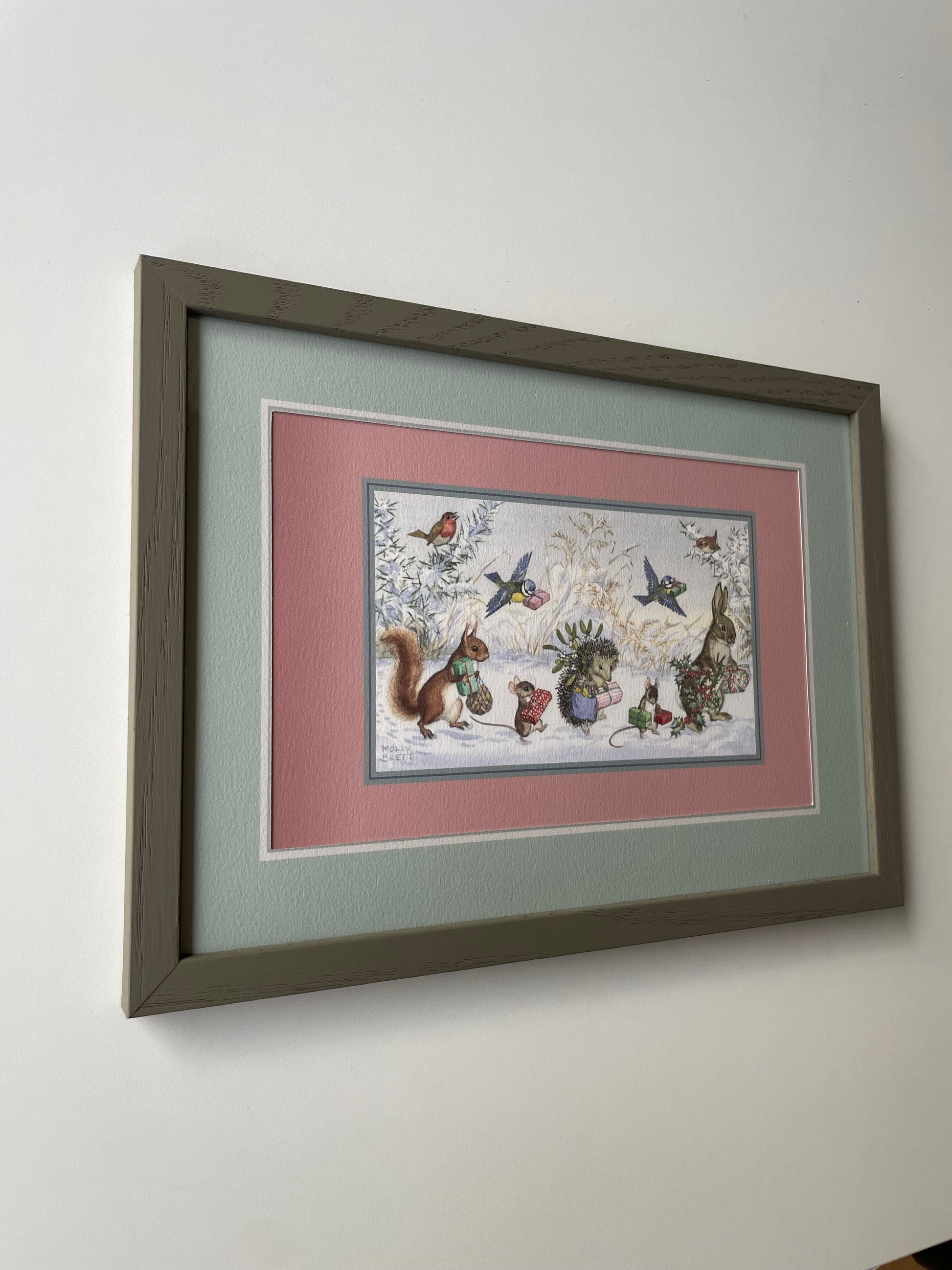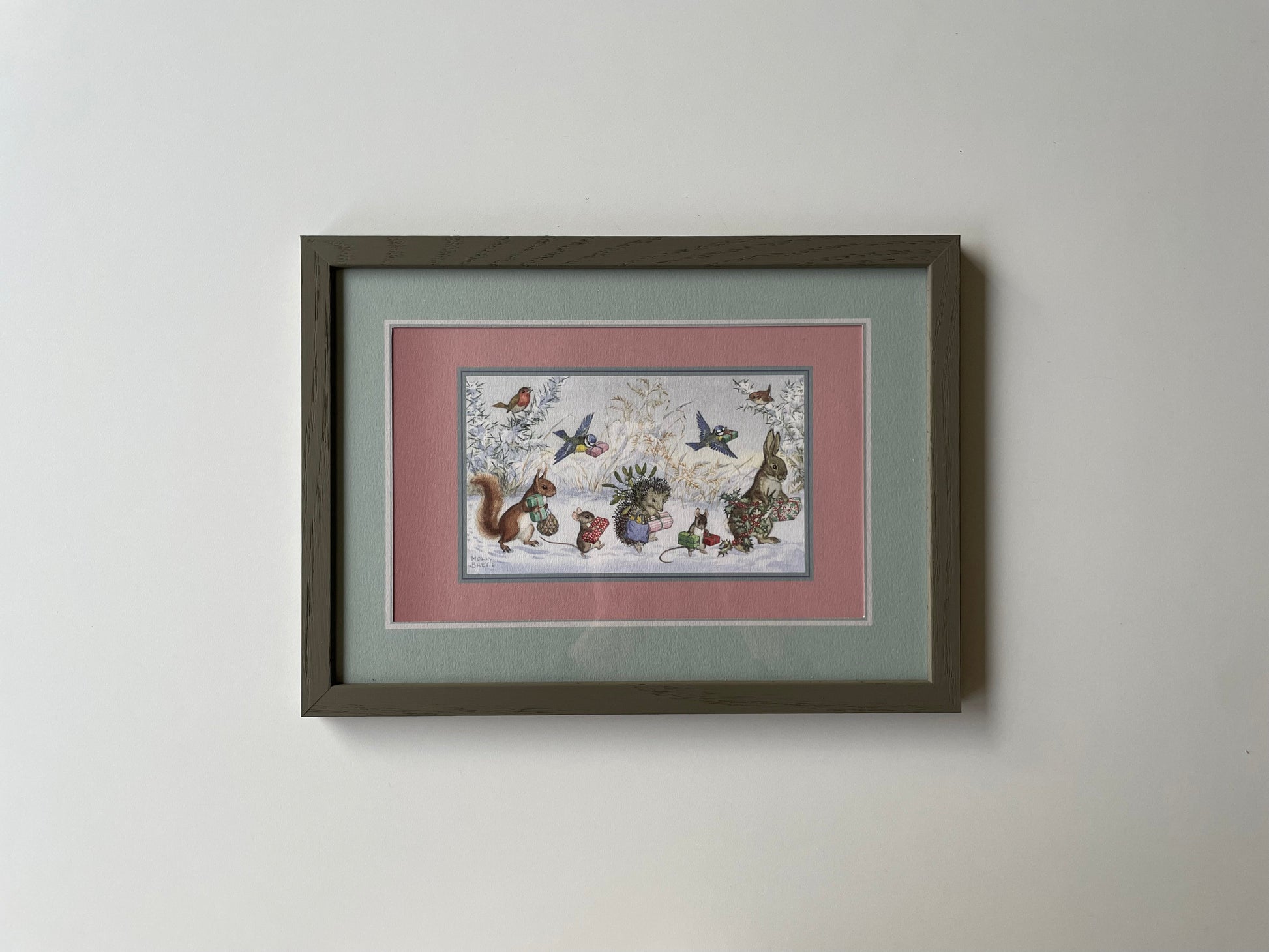 This is a unique vintage print matched with a hand painted oak frame and a hand cut passepartout. The cutest little thing, and perfect if you seek a little winter wonderland or snowy dreams to enter your little one's imagination.